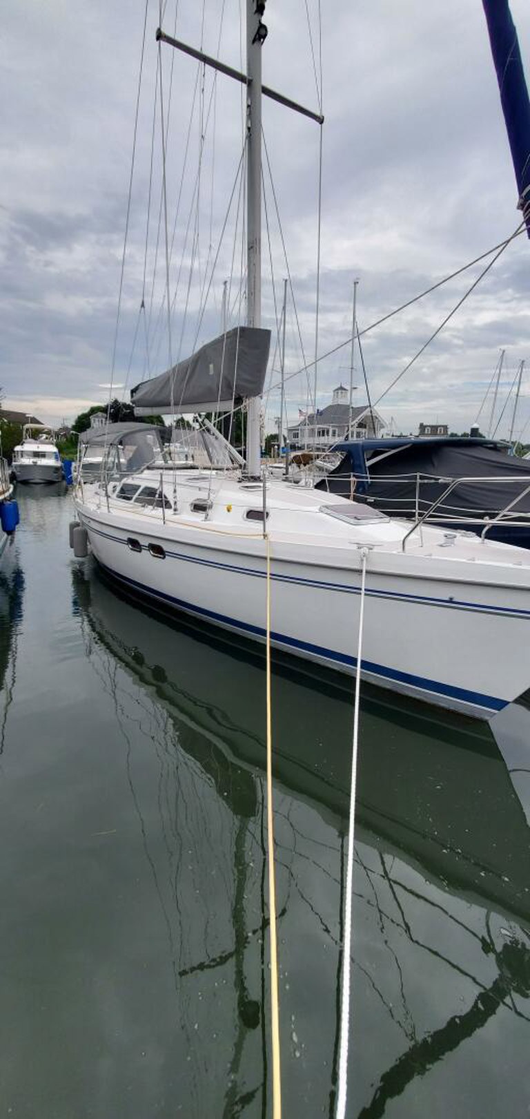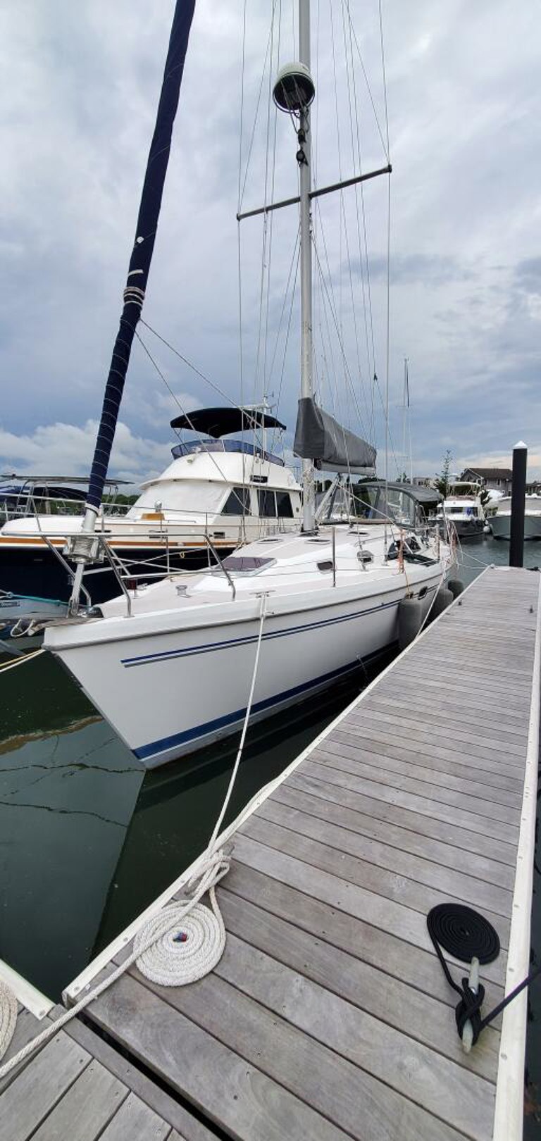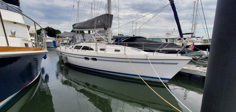 Gratitude, a meticulously maintained 2007 Catalina 387, immediately captivates with her gleaming finish, inviting you aboard. Having spent her first 10 years in fresh water. This comfortable cruiser boasts innerspring mattresses, air conditioning and heat, and solar panels, making her ideal for both short excursions and extended voyages. Her spacious two-cabin layout, features a private aft owner’s cabin and forward V-berth and a salon with an expandable dinette table and ample natural light. Well-equipped for modern cruising, Gratitude includes a comprehensive electrical system with recent Victron battery chargers (2023) and solar power, a Fairclough Winter Cover and much, much more! To truly appreciate “Gratitude’s” exceptional condition and features, please call to arrange a viewing appointment.