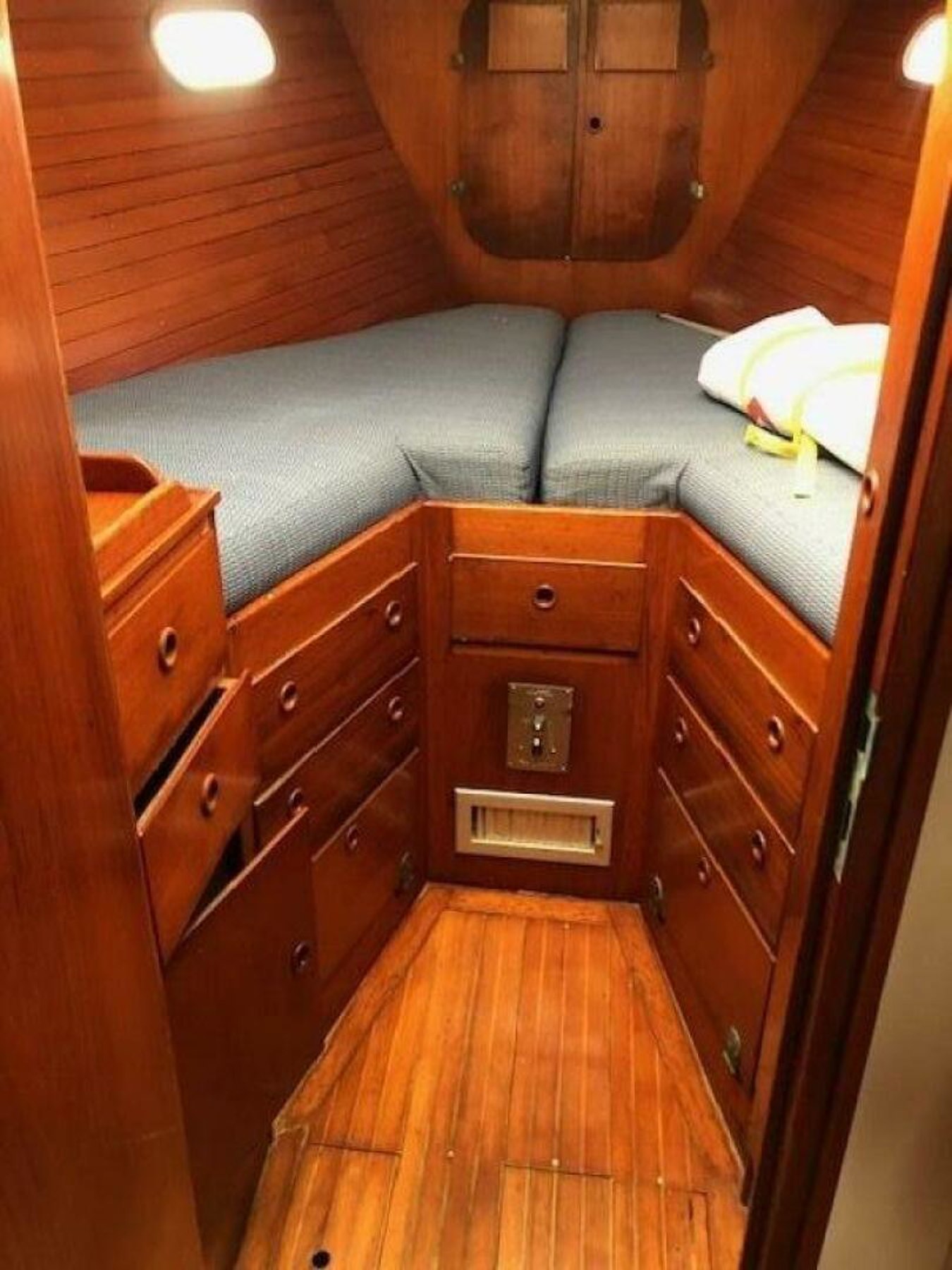 The Fastnet 45 was built to the highest standards for ocean racing and cruising at the respected Dutch yard of Adolf LeComte. These yachts were designed by William Luders, who created a powerful, sea-kindly vessel with beautiful classic lines. The interior plan features 3 private staterooms, two heads with showers, a spacious main salon, an exceptional sea galley, a spacious navigation station, and wonderful touches throughout such as Nav station with bookshelves The interior joinery is varnished teak, with solid teak and holly cabin soles.
