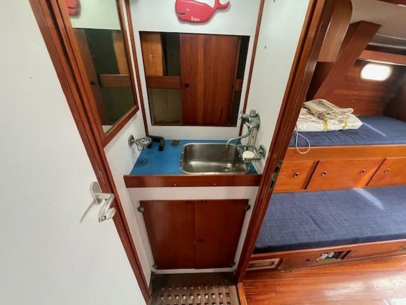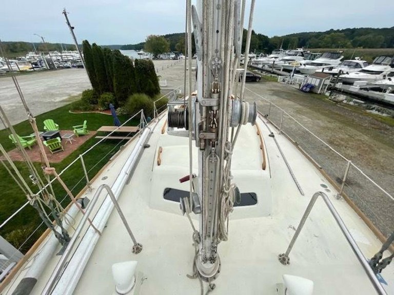 Topside there is an expansive cockpit, a split rig with a removable inner staysail, an elegant sheer and a high bow for slicing through the sea Black Seal is a time-proven cruising yacht that has been continuously upgraded and improved by knowledgeable owners. She has been sailed successfully to Bermuda caribbean and an extended transatlantic cruise to Europe and all over the Med. She is a joy to sail, sea-kindly, stiff and dry, and surprisingly fast even compared to today’s modern hulls.