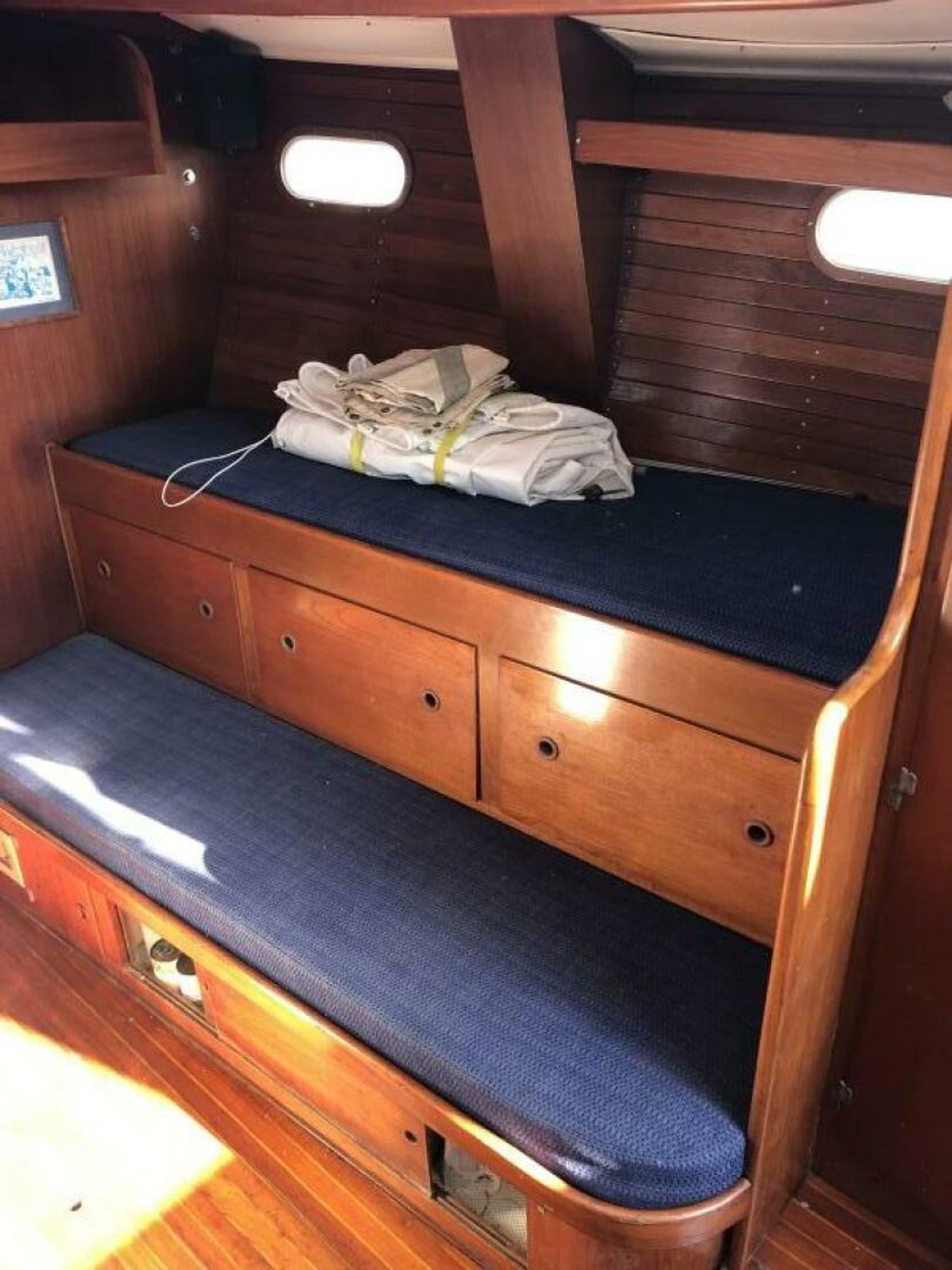 Excellent space utilization permits the Fastnet 45 to offer a roomy, Three separate cabins with a large V berth with a double cabin to port and finally single berth to starboard. 2 heads with with showers and plenty of storage