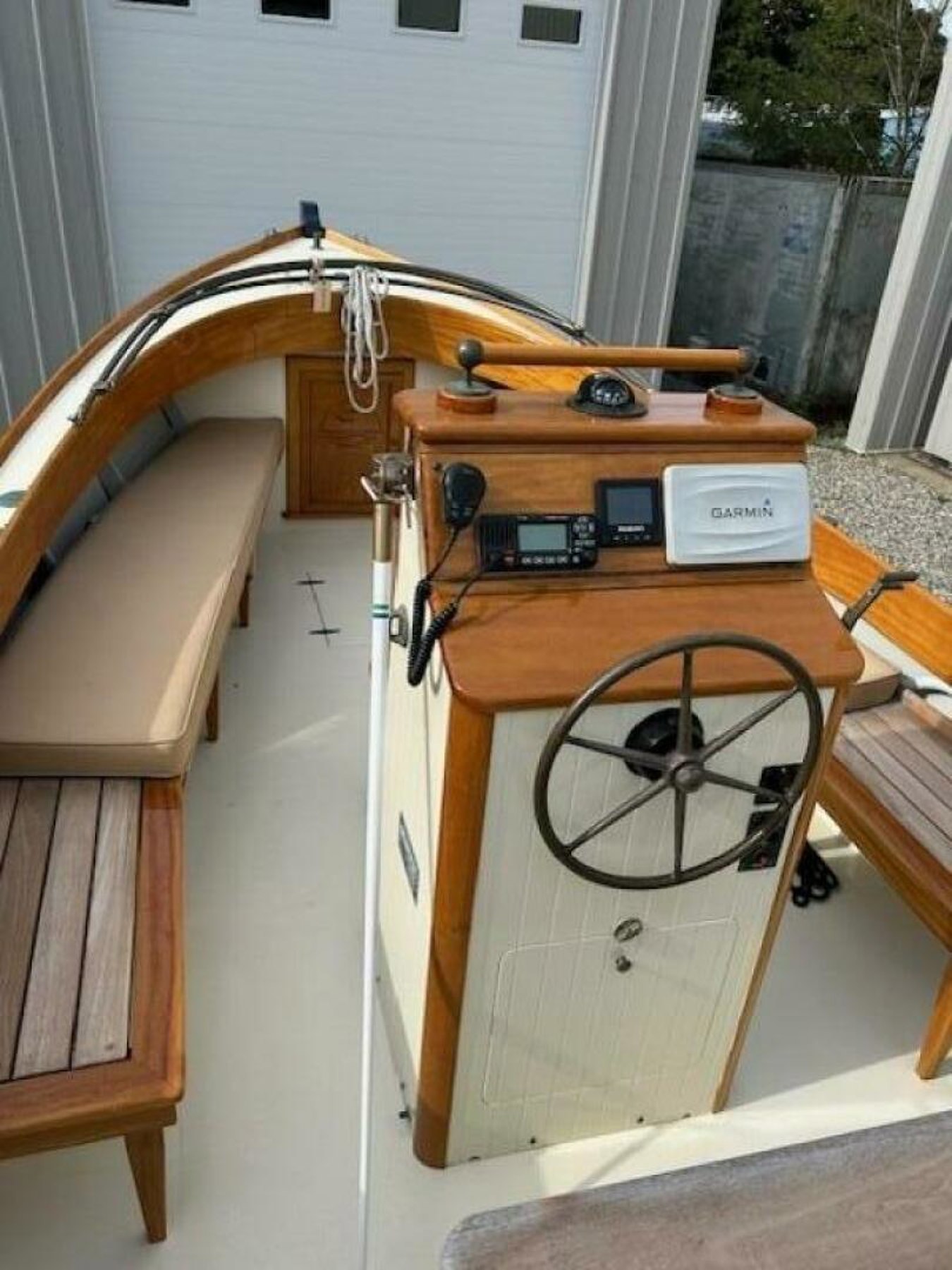 Wood and epoxy composite hull: Each Monomoy is built using wood and epoxy composite construction, which provides the timeless beauty of a wooden boat with the strength and longevity of modern materials.