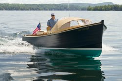The First Light Boat Works Monomoy 26 is a classic-styled, semi-custom wooden powerboat known for its elegant lapstrake design and versatile performance in shallow coastal waters. Built by hand in Chatham, Massachusetts, it blends traditional wooden boat craftsmanship with modern, composite-reinforced construction for a durable, award-winning vessel.