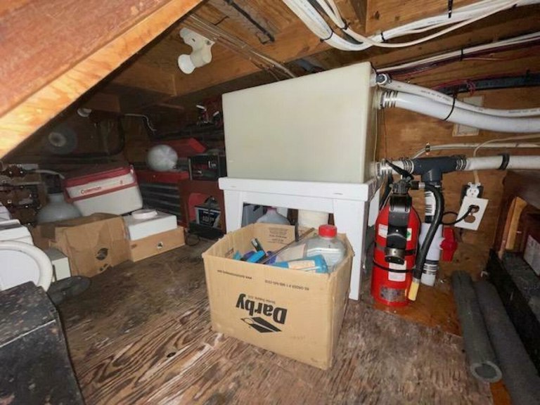 ELUSIVE can sleep 8 guests in 3 staterooms plus a convertible settee for two in the salon. The primary stateroom is aft with twin berths and an en-suite head with stall shower. Forward to port is the second cabin with 2 bunk beds. Opposite to starboard is a guest head which also serves as a day head. Up a few steps is the main salon. Moving forward and down two steps from the salon is the galley and dinette followed by the forward guest stateroom with upper and lower bunks.