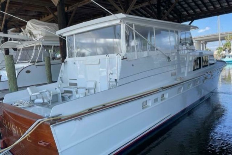 Brokers RemarksELUSIVE has been maintained by Huckins Yacht Corporation and kept at their facility under cover and has been getting routine maintenance every year. In April of 2023 all the batteries were replaced along with a new 32v smart charging system.