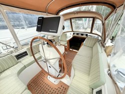 Large comfortable sit down forward facing nav station with chart table and three storage drawers. All navigation and communication electronics upgraded in 2023 including the following: