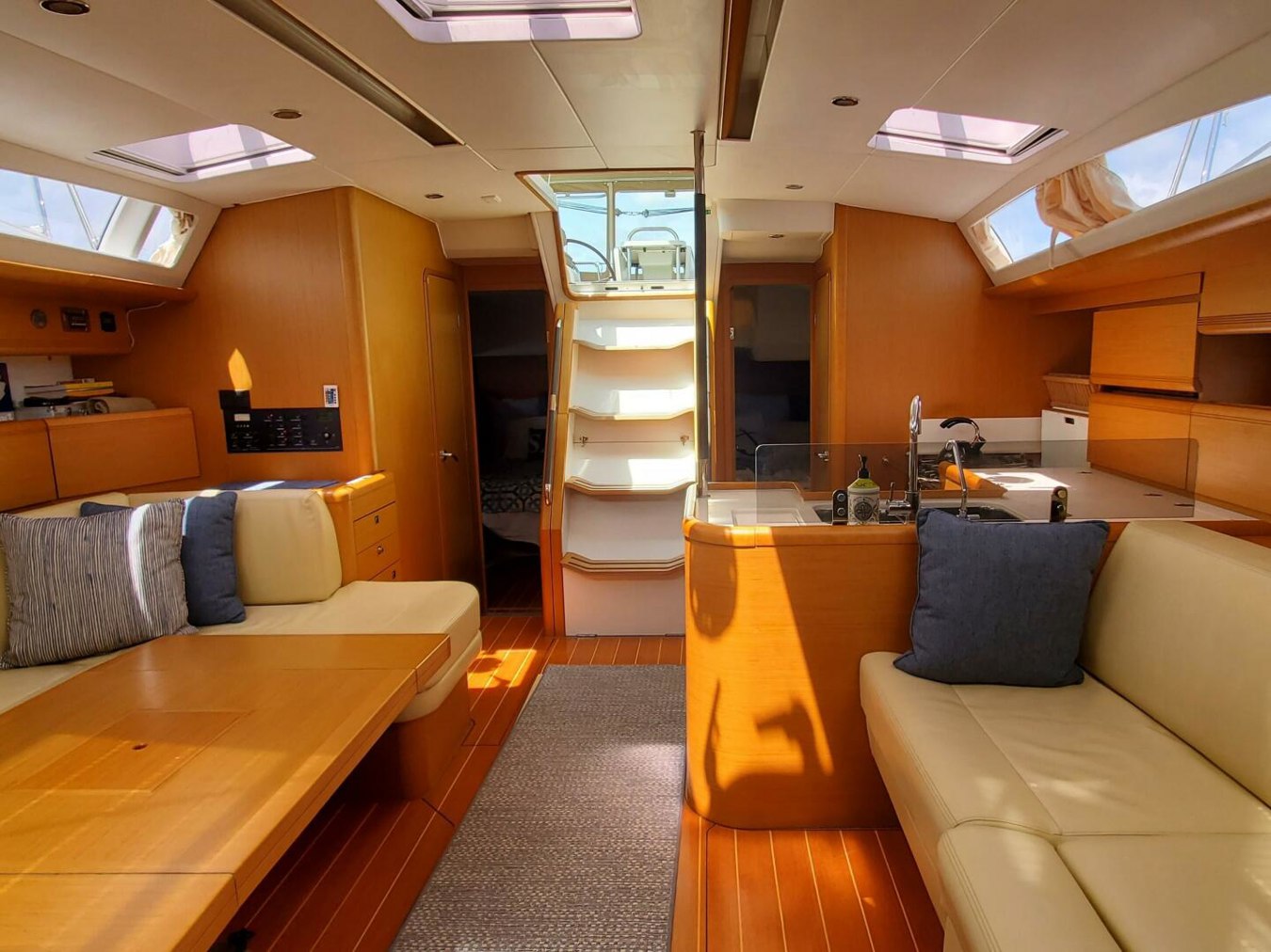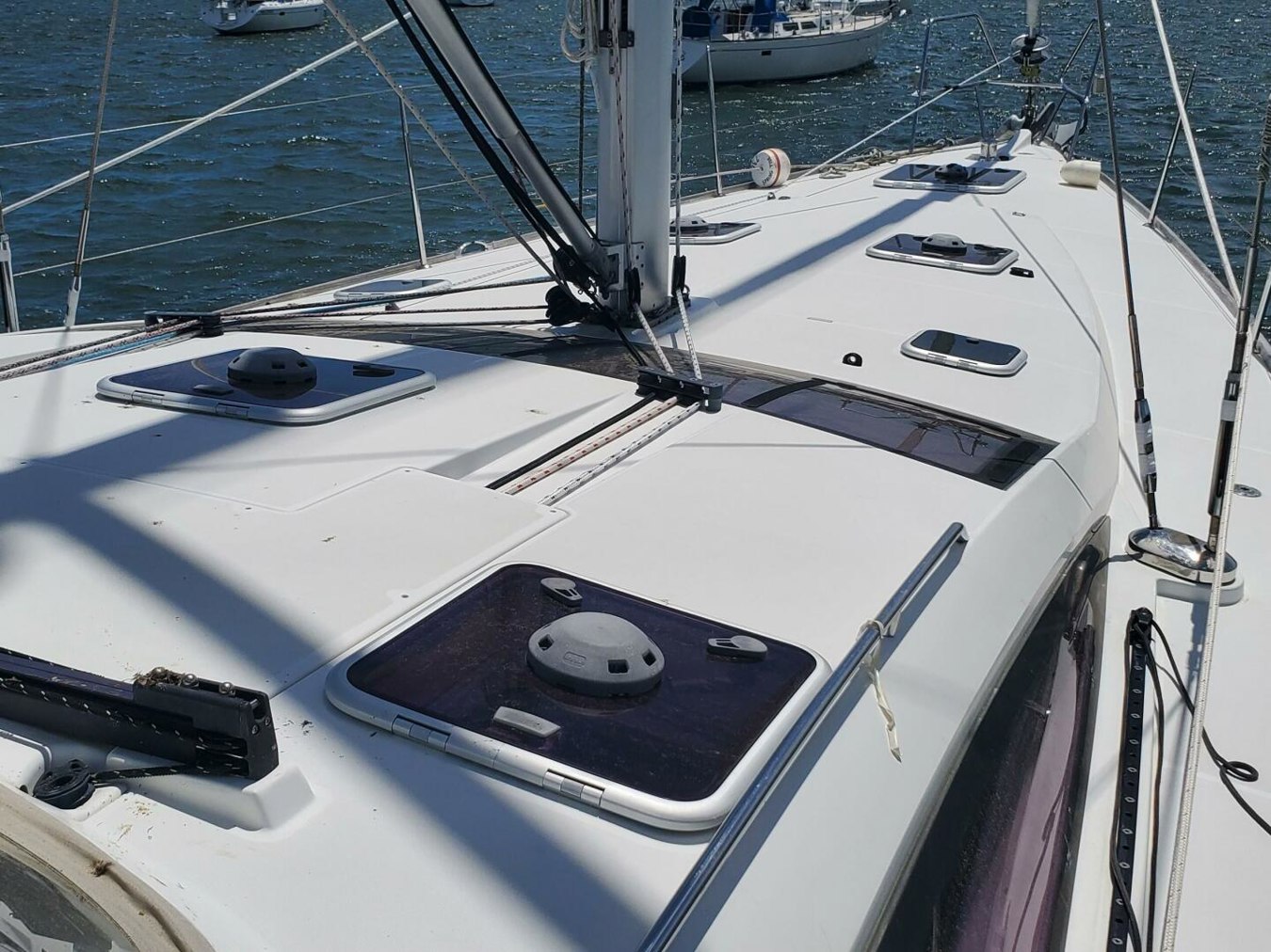 Spring Tide is a 2012 Jeanneau 53. She has lived her entire life in the Northeast, has been hauled out and stored indoors with full maintenance by Burr Brothers each winter since 2017. She is loaded with gear, clean and shows well. She features a huge cockpit with a full canvas enclosure, solar panels, dinghy davits, dinghy with outboard, generator, AC/Heat, (2) 12V heads, (3) 12V winches, never been chartered, teak decks in cockpit only – NO teak decks outside of the cockpit and much more! Call for an appointment to see this great boat!