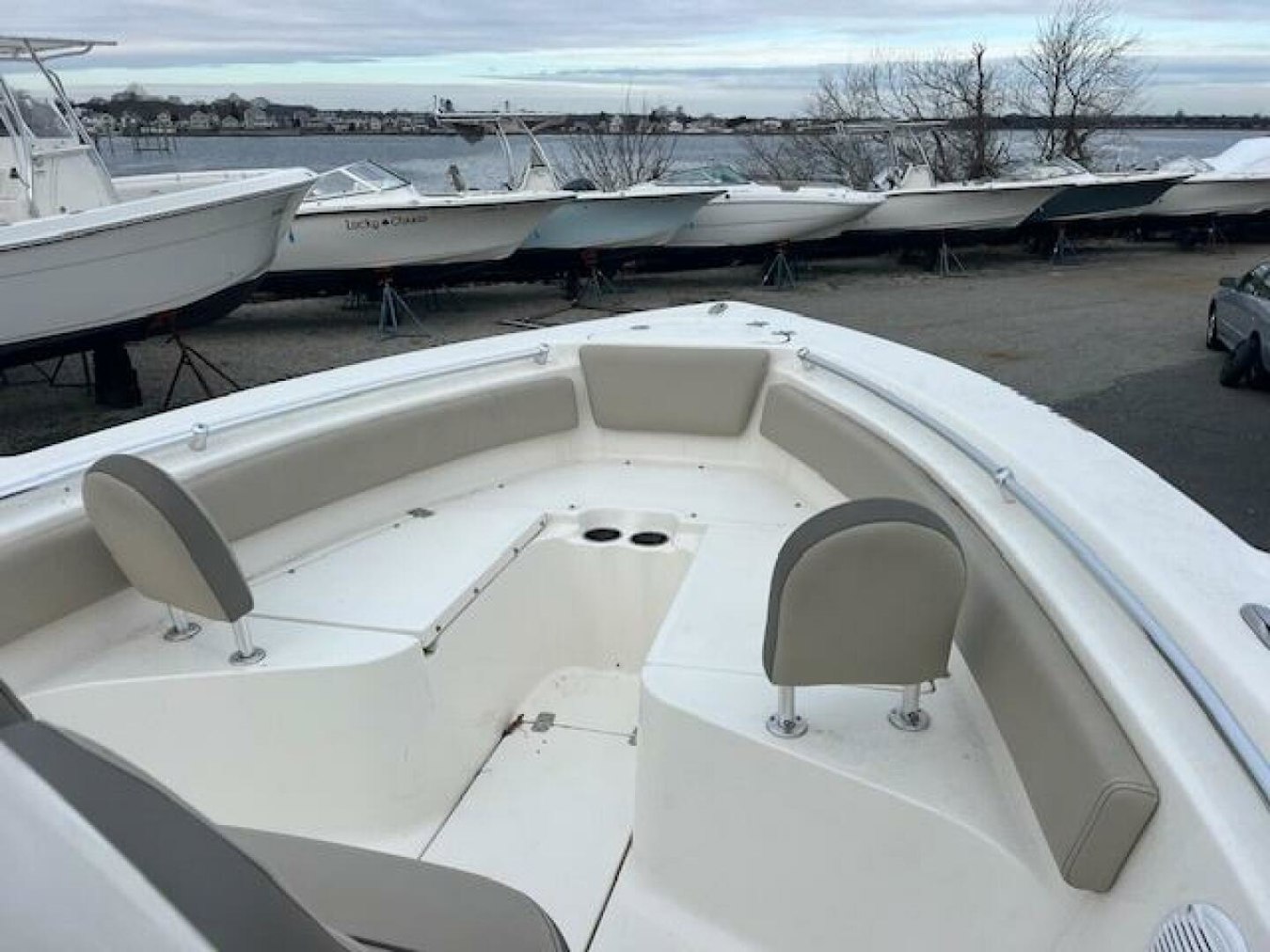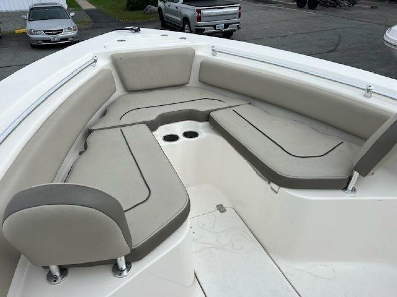The 239FS offers the largest cockpit in its class, and loaded with features for both family comfort and serious fishing. Enjoy the comfort of the full width bench seat in the rear and the optional front facing seating in the bow for relaxing day on the water with the family and friends, or hit the blue water safe and secure in a very capable long range offshore fishing platform. Fishing features include the ever present live well, rod storage racks, trolling rod holders, and even an insulated, macerated under floor fish box up front. The 239FS is ready for whatever water sports your family enjoys.