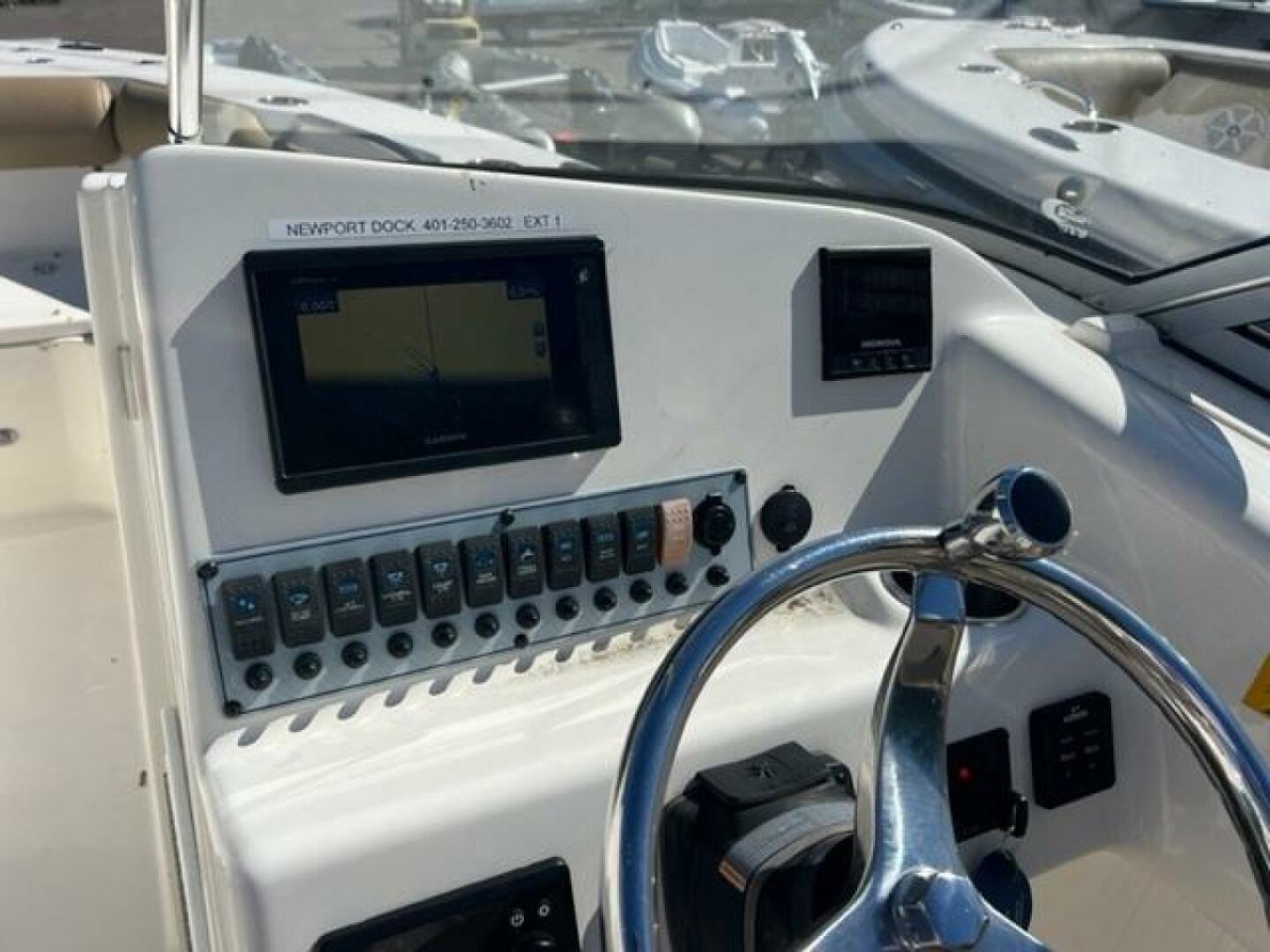 The 239DFS is loaded with amenities, comfort, style, and performance. She is equipped with a Honda 225hp engine with 848 hours (New engine can be installed at an additional cost) ,stereo ,Speakers and a Garmin chart plotter. She is fully equipped and ready for her next adventure. Prior to selling she will receive
