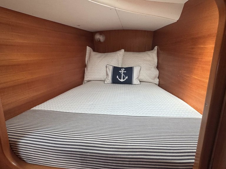 Wylicat is the highly sought after ‘owner’s version’ with three cabins and two heads. The salon and galley were refit in 2020 with new cushions, Corian cocktail table with storage below, new Corian counters, Kenyon Silken 21” induction cooktop, new double-bowl stainless steel sink and faucet, and new Skysol custom window blinds and Dometic roller window covers (blackout and screen) throughout.