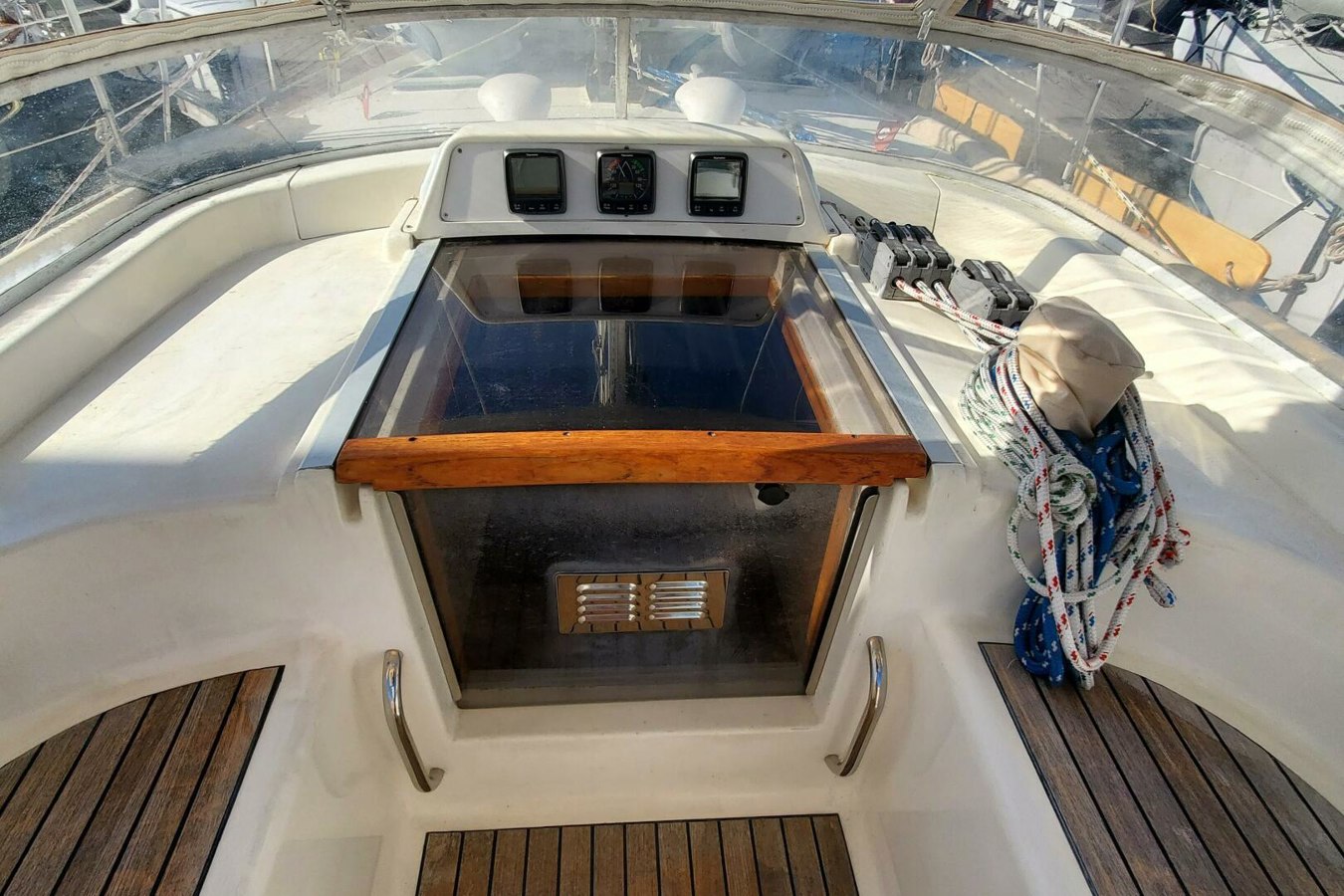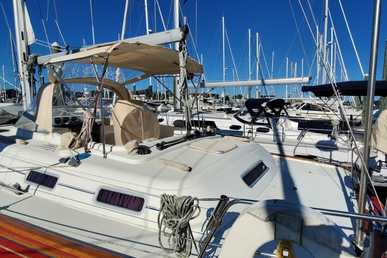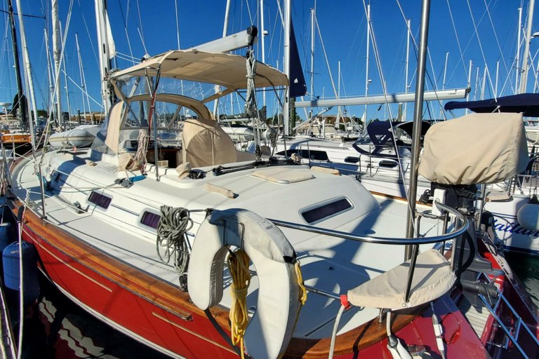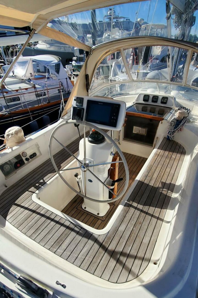 Anikitos is a 2001 Moody 42 Center Cockpit combines elegance and performance. She is designed for both comfort and functionality. Her fiberglass hull features a bulb keel, ensuring stability and a smooth sailing experience. Powered by a reliable 56Hp Yanmar 4JH3E diesel engine, the boat is equipped with a direct drive system and a bronze 3-blade propeller, enhancing its maneuverability. The electric windlass adds convenience, making anchoring effortless. The interior layout is thoughtfully designed, providing ample space for relaxation and enjoyment on the water. The space is highlighted by the huge aft stateroom that makes center cockpits so popular. The Moody 42 Center Cockpit is perfect for cruising enthusiasts seeking a blend of performance and comfort, making it an excellent choice for your next adventure. Experience the joy of sailing with the Anikitos, where every journey becomes a memorable escape. Call for an appointment to see this great boat today!