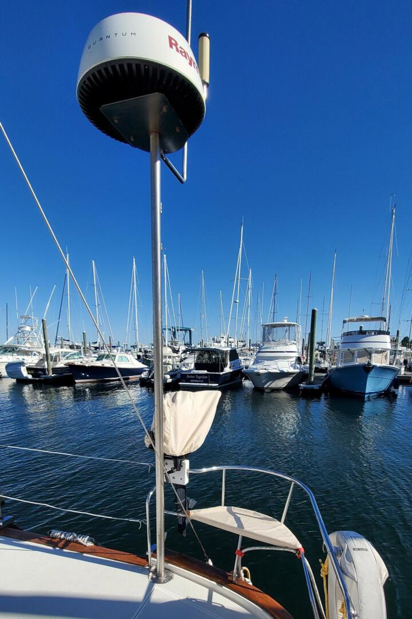 Raymarine Quantum Radar Dome, on stern pole (2017)