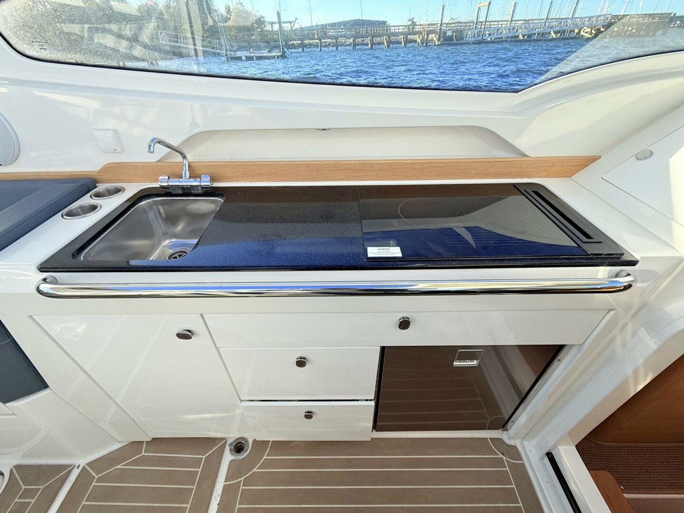 Designed with Nimbus’s signature Sidewalk layout, the W9 provides secure, open walking spaces around the deck, enhancing both safety and comfort underway. The spacious cockpit includes a large L-shaped sofa that transforms into a sunbed, while the foredeck offers another lounging area for relaxation. Features such as a fully equipped galley with a 65-liter refrigerator and cooktop, a separate head with wash basin, and thoughtful design details make it ideal for extended day trips or spontaneous weekend getaways.