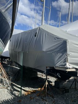 Tusen Takk offers an exceptional on-board experience. The curved front windshield and overhead glass atrium provide stunning 360-degree views and fill the salon with natural light. For ultimate comfort, the aft glass bulkhead, along with various hatches, windows, and port lights, can be opened to create a refreshing breeze throughout the cabin. The full galley and removable electric Kenyon grill are perfect for culinary enthusiasts, while the spacious cockpit and double bow lounge seat offer ideal spots to enjoy a sunset.